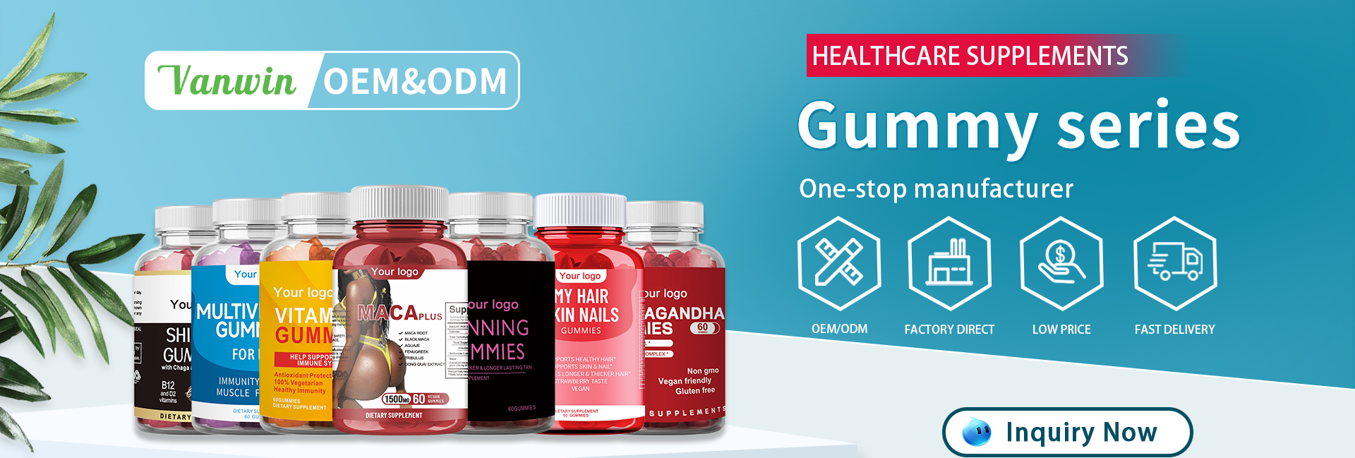 Vanwin OEM Etiqueta Privada 60 gomitas de setas masticables con Ashwagandha Lion Mane Reishi cola de pavo Maitake Chaga Shitake Cordyceps